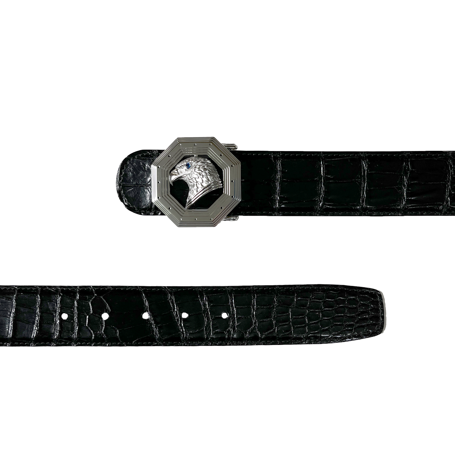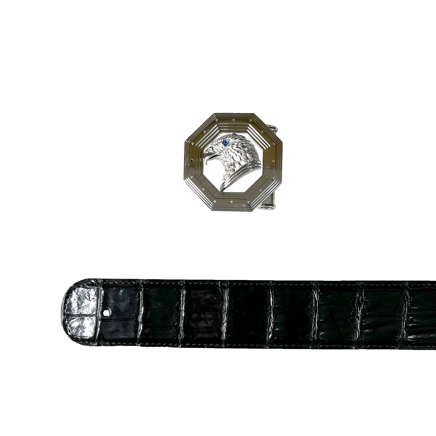 八角银鹰扣鳄鱼皮