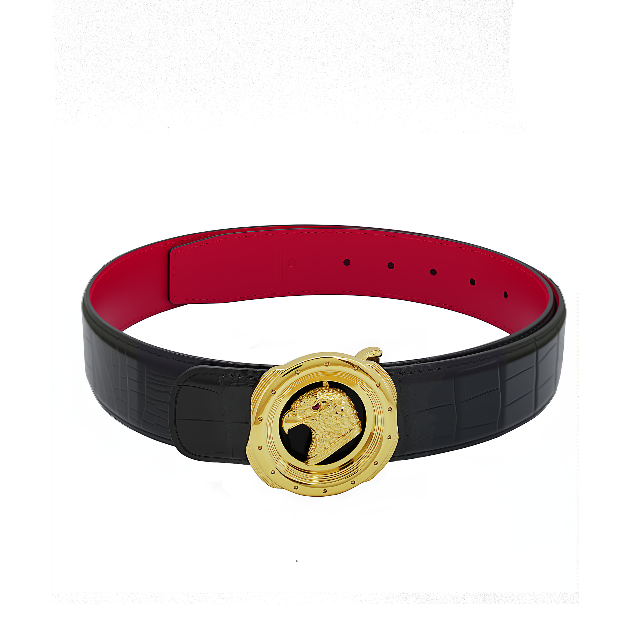 红底双面正圆金鹰鳄鱼皮腰带