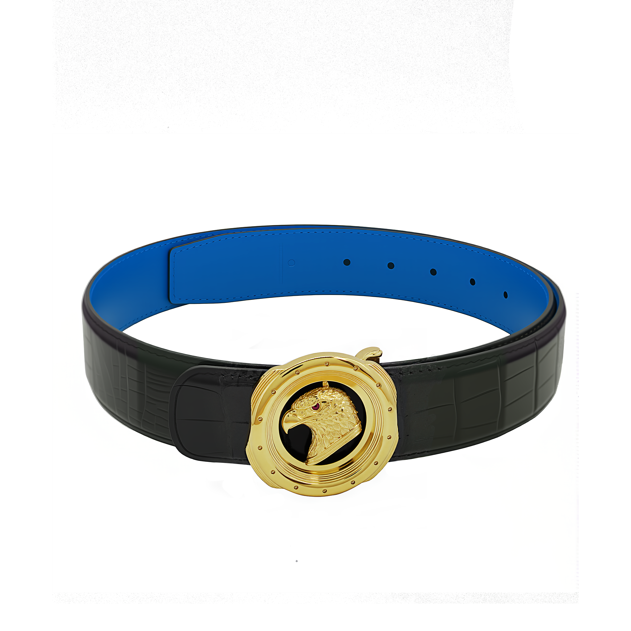 蓝底双面正圆金鹰鳄鱼皮腰带