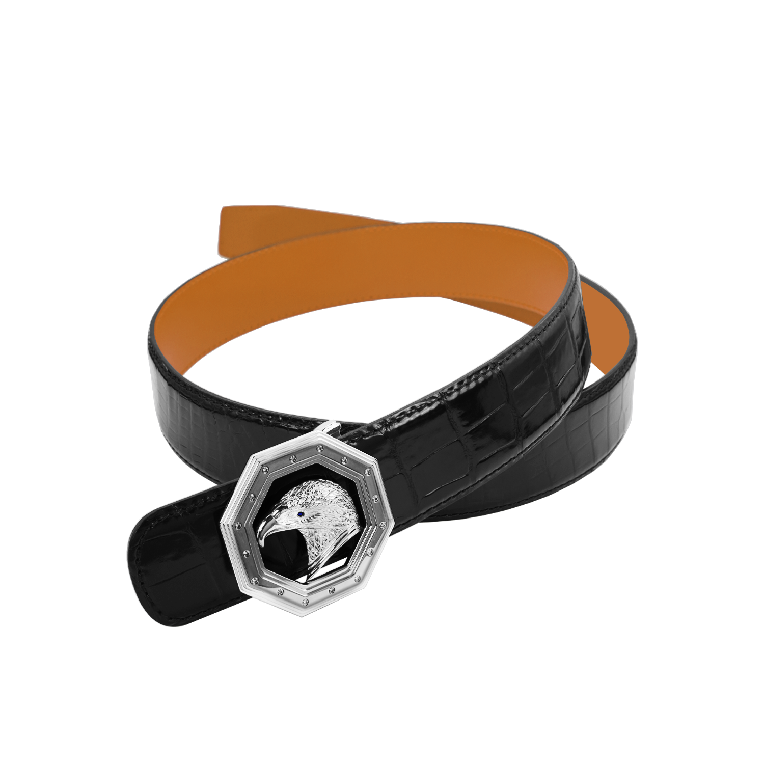 镶钻棕底双面八角银鹰鳄鱼皮腰带