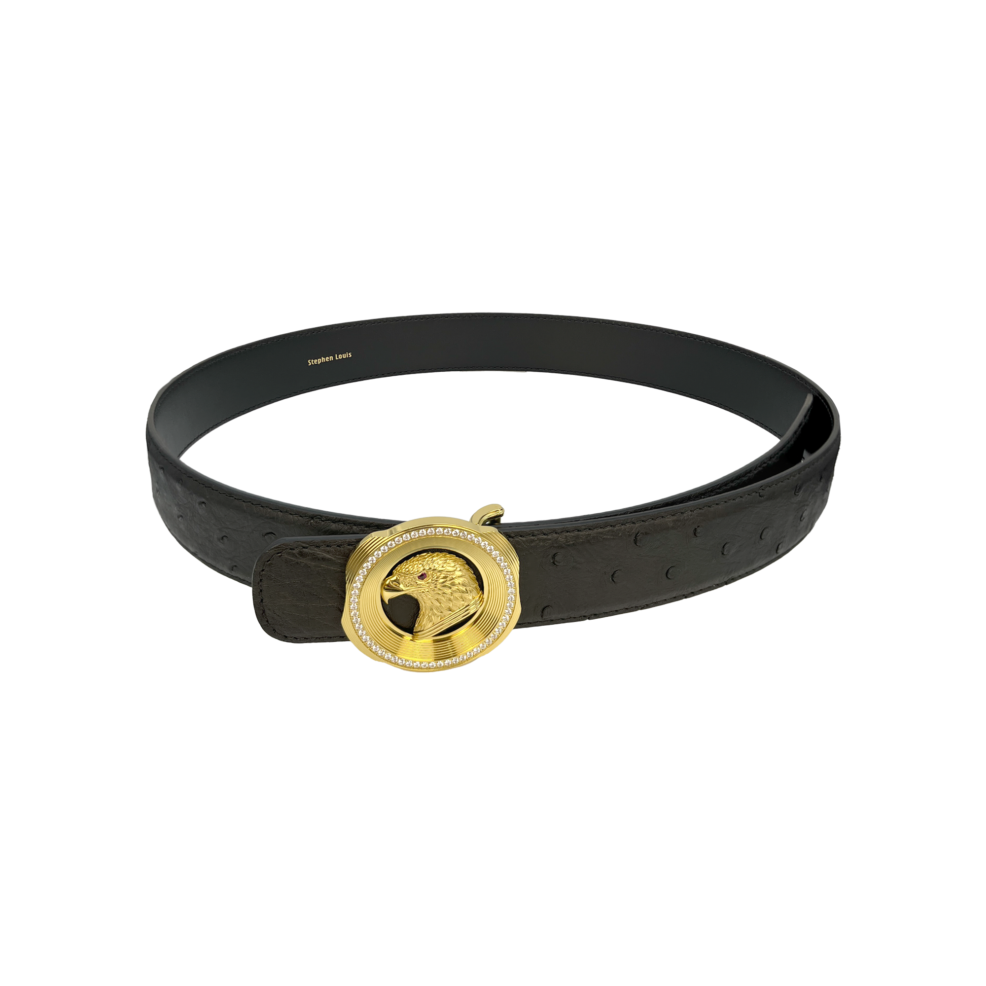 镶钻正圆金鹰扣鸵鸟皮腰带