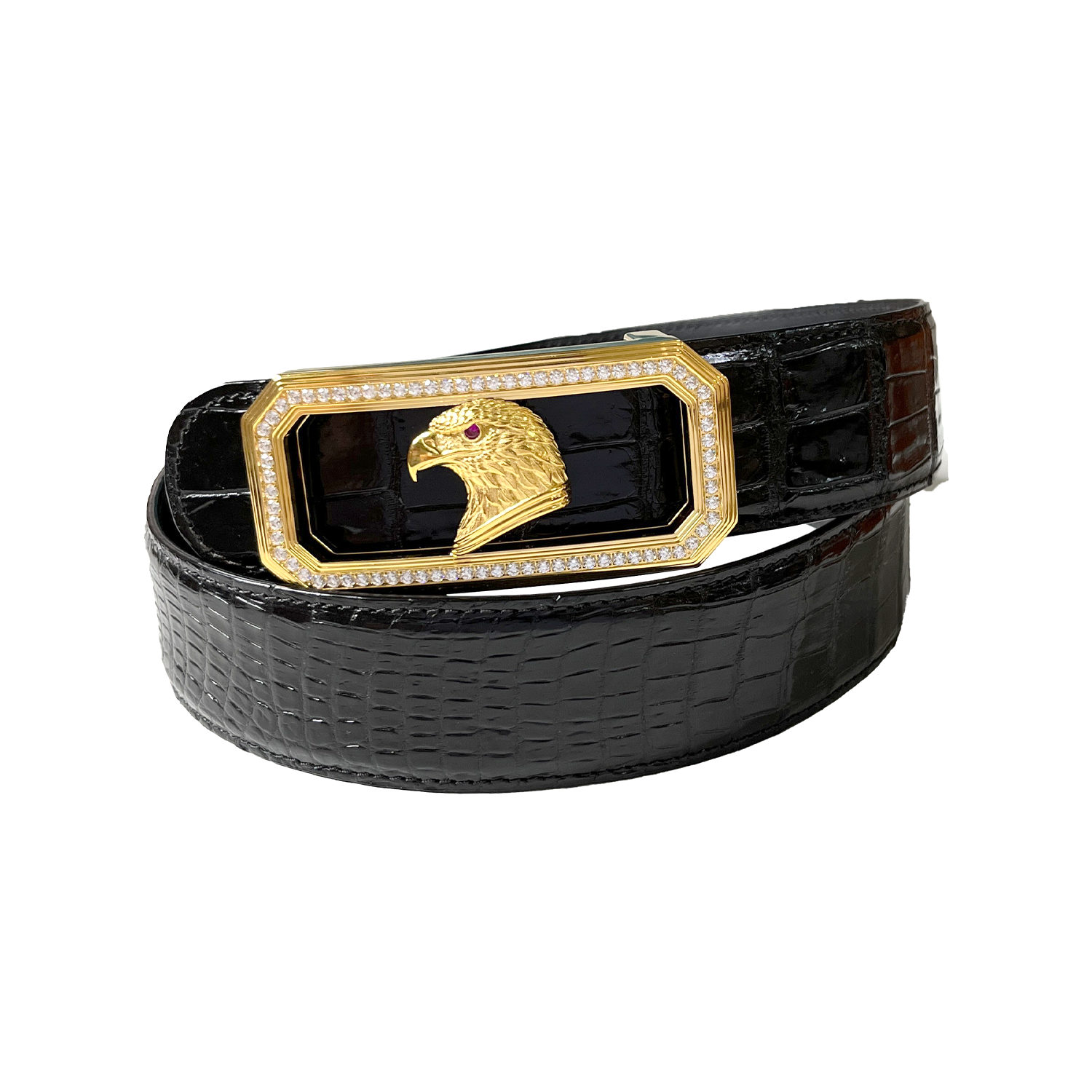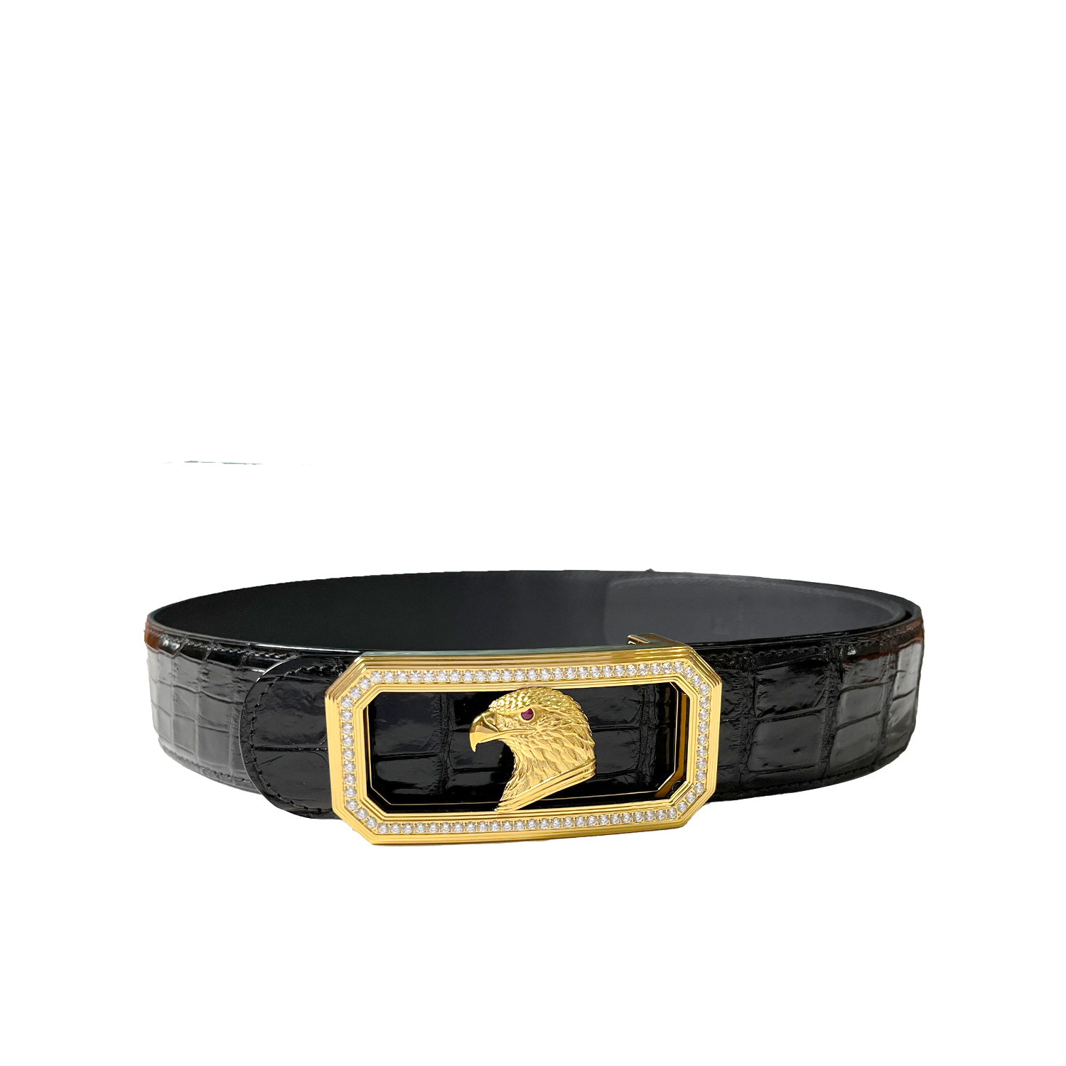 镶钻长方金鹰扣鳄鱼皮