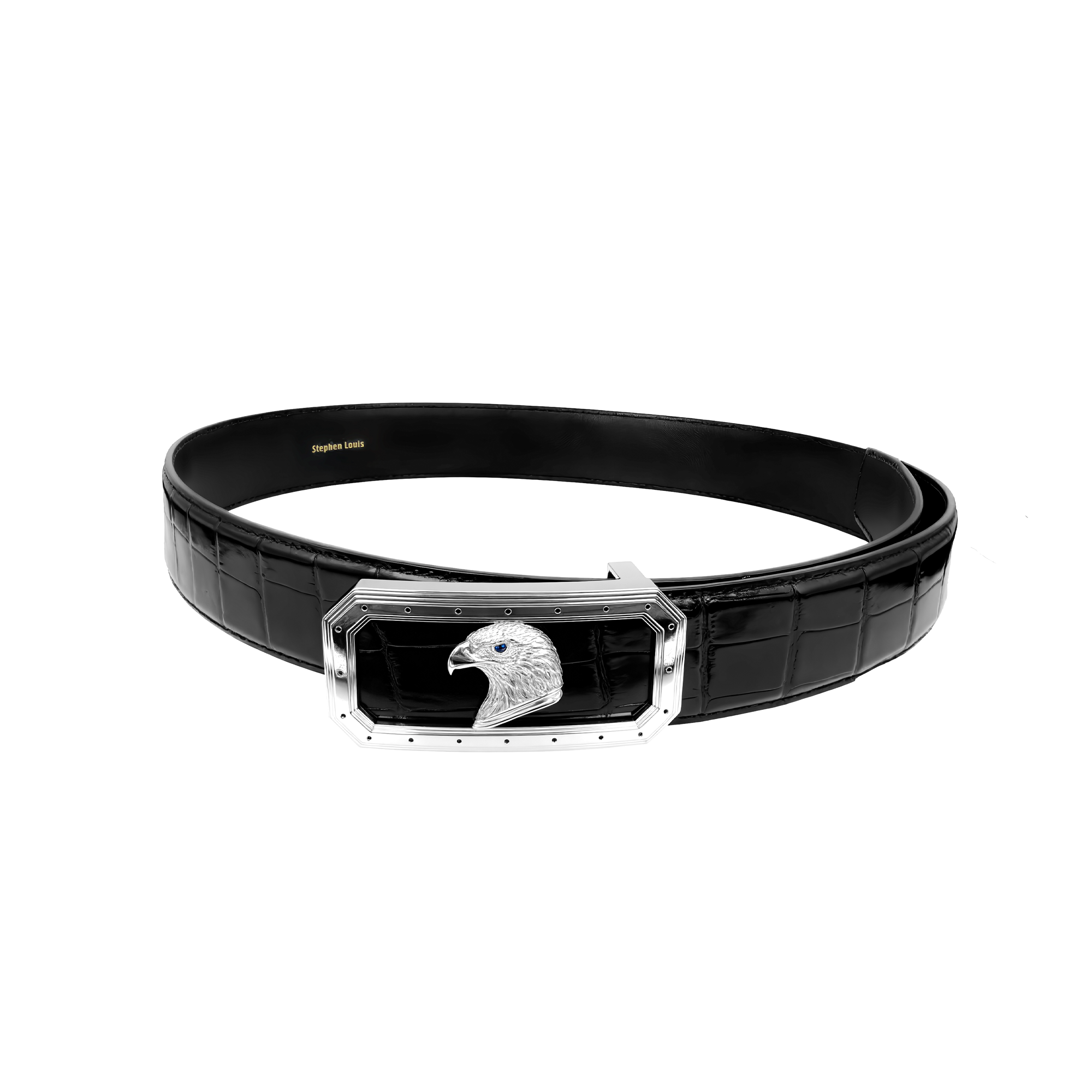 镶钻棕底双面八角银鹰鳄鱼皮腰带